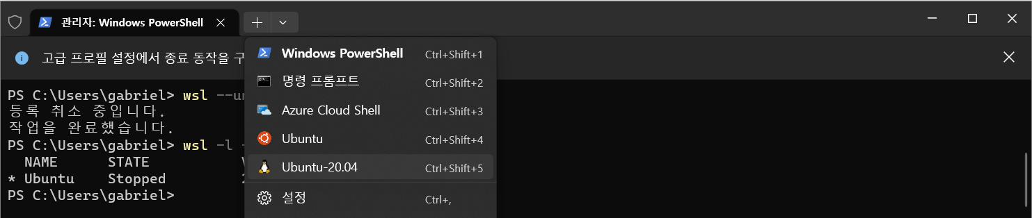PS C:\Users\gabriel> wsl --unregister Ubuntu-20.04