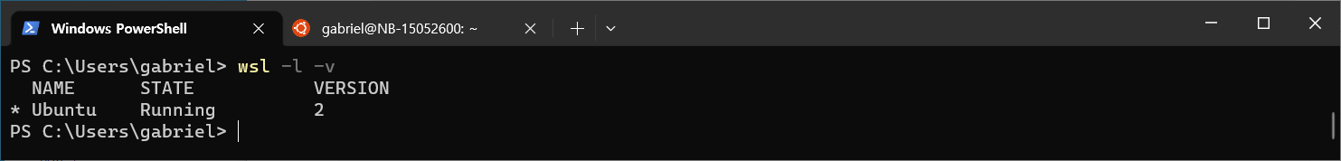 PS C:\Users\gabriel> wsl -l -v