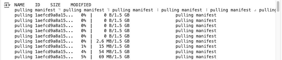 pulling e0a42594d802... 100% ▕█████████████████████████████████████████████████▏ 358 B