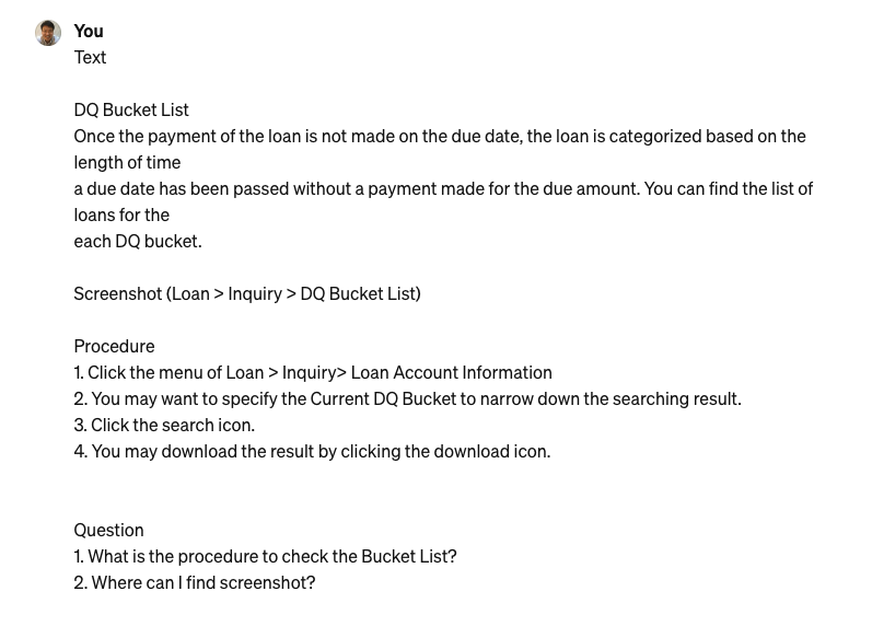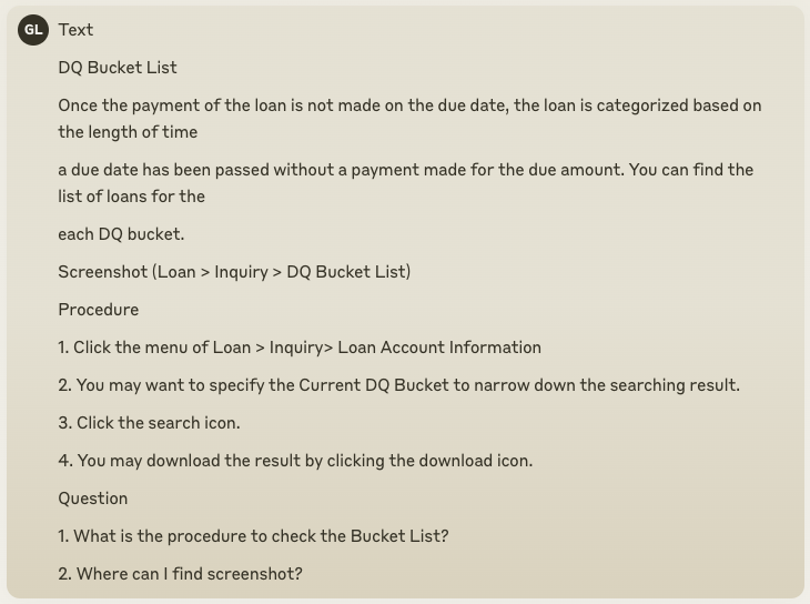 **Answer 2:** The screenshot can be found under "DQ Bucket List" with a caption that says: "Screenshot (Loan > Inquiry > DQ Bucket